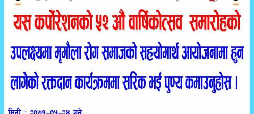 "मृगौला रोग समाज नेपाल " सहयोगार्थ रक्तदान कार्यक्रम -२०१४