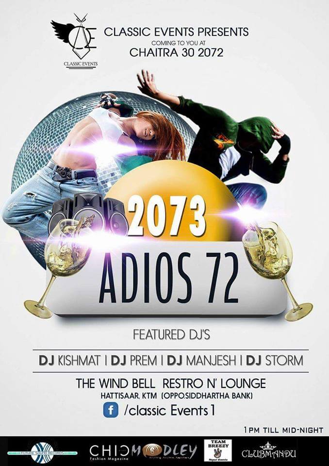 It 's always fun to ring in the New Year with a festive party. And we are here again with the finest New year's eve party in town 'Adios 72 ! ' .