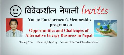 events > training & workshop > नेपालमा बैकल्पिक उर्जाको व्यवसाय (अवसर र चुनौतिहरु) ; उधमी सल्लाह -सुझाव