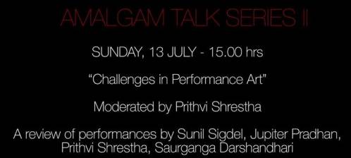 "Challenges in Performance Art" Moderated by Prithvi Shrestha. A review of the performances by Sunil Sigdel, Jupiter Pradhan, Prithvi Shrestha and Saurganga Darshandhari Venue: Siddhartha Art Gallery, Baber Mahal Revisited Email: siddharthaartgallery@gmail.com Tel: 42180..