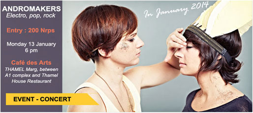 Concert start at 6 pm on Monday 13th of January at Café des Arts, Thamel, between A1 complex and Thamel House Restaurant (Entrance: 200 Nprs)