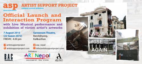You are cordially invited to opening Launch of Artist Support Project with live music performance by internationally renowned Nepali musicians and exhibition of artwork by earthquake victim artists, initiated by Bikalpa Art Center, ARTNepal and Artudio.