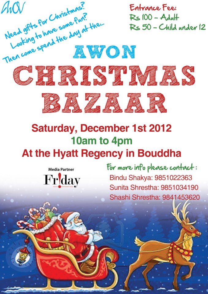 100 varieties of stalls mainly local artisans, handicrafts, carpets, shawls.handicrafts, potteries along with delicious eateries served by HYATT Regency Baudha, NEPAL.....Santa Clause, Children Games..