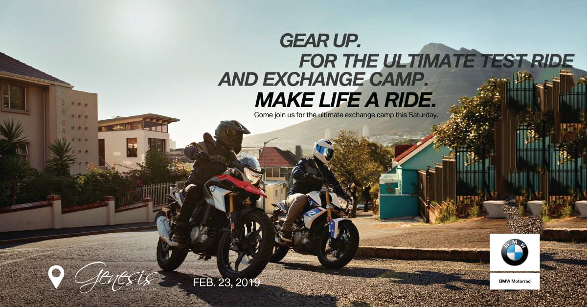 Come join us at Genesis Cafe this Saturday for "BMW Motorrad Test Ride and Exchange Camp" and bring home a part of BMW Legacy.