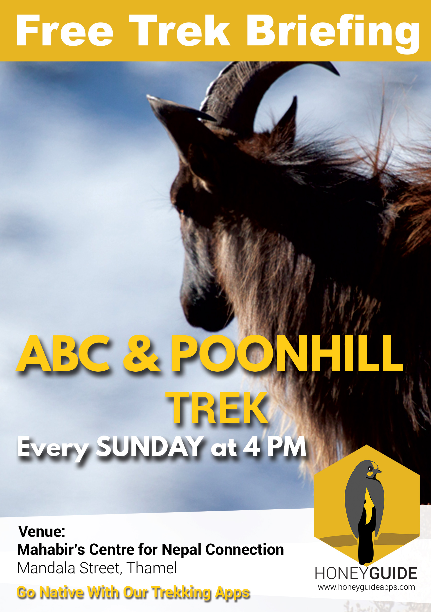 Annapurna Base Camp as well as its popular side trip Poonhill trek is an irresistible trek, especially for amateur trekkers. But most trekkers do not come fully prepared for the trek and do not experience to the fullest. HoneyGuide, with the aim to provide information about everything trekkers would need to know about ABC and Poonhill trek, is organizing a FREE weekly briefing. It will include updates on weather info, wildlife pattern, cultural etiquettes, mountain info, major as well as hidden local attractions, trekking route descriptions, etc. Of course, along with basic information, we will also provide local, in-depth, personal information which you will find nowhere else.
