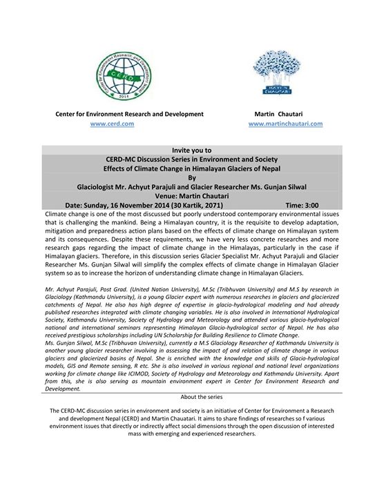 All interested candidates/ graduates are welcome to participate and interact to get to know and expand their knowledge on the effects that have been seen on the Himalayan glaciers of Nepal with respect to the burning event of climate change.