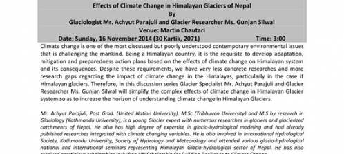 Topic: Effects of Climate Change on Himalayan Glaciers of Nepal