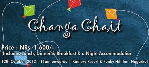 Sathi Bhaii sanga bachha ma khub changa wudayinthiyo .. tei din haru lai sambodhan gardai Kinnery Resort ra Funky Hill Inn - Nagarkot ma Bindass Wild CHANGA CHAIT compitition ani ramailo party. Lunch upon arrival. Whole day Kite flying following by Dinner and Dance party. Bihanai breakfast the next day , Tower Ghum gham ani Ghar Phirta. Special Prize 1st huney team lai 1 case Gorkha Beer or Tuborg Beer ani Second huney team lai 1 full R.S or Romonov Vodka .. luu jaa ani Third huney team lai 2 lte Gau Ghar ko pure Nigarr ..