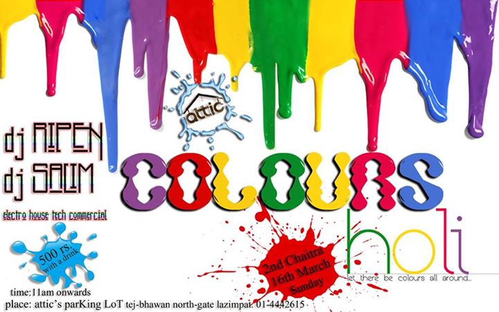 festivaL of COLOURS.....festivaL of joY & haPpiness.....festivaL of togetherness....like every year this year also we are celeBrating our fav. festivaL 'hoLi' at our 'ParKing LoT'........gonna be soMe fUn under tHe sUn with some grEat muSic-waTer sHower-pLunGe pOoLs & ofcOurSe Lots of COLOURS.....oN coNsoLe we'll be haviNg 'Dj RipEn' & 'Dj SaLim' spiNning some cOoLs traCks for you aLL......
