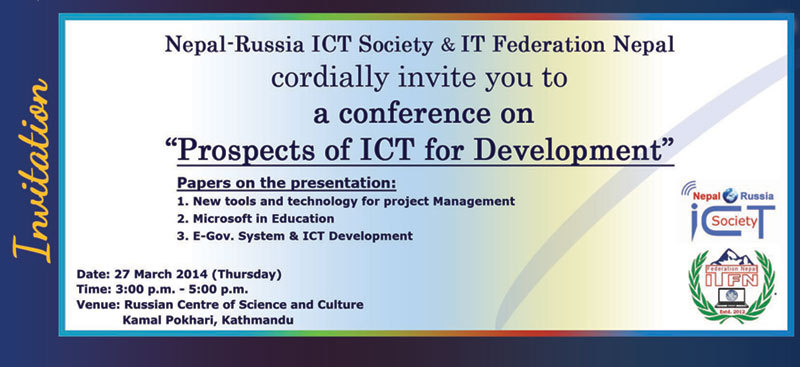 For more info: http://www.eventsinnepal.com/event/conference-on-prospects-of-ict-for-development
