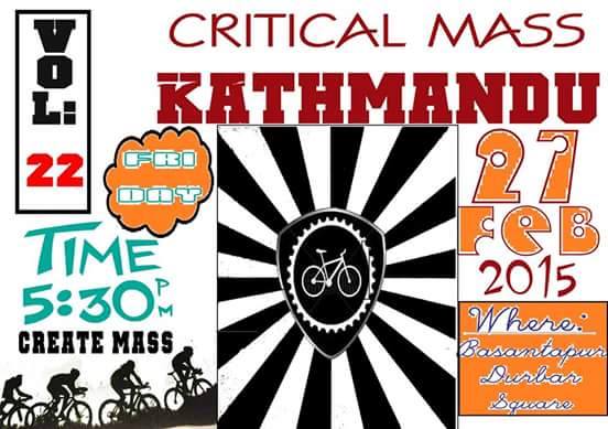 Since April 2013, Critical mass kathmandu has been taking place Every Last Friday of English month.
