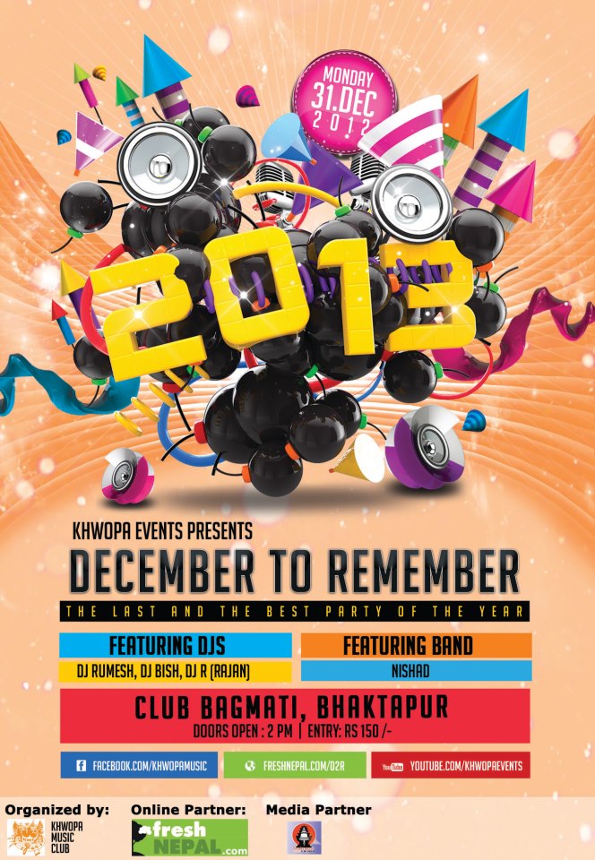 Khwopa Music Club / Khwopa Events Presents DECEMBER TO REMEMBER The last and the best party of the year. Featuring DJs : DJ Rumace DJ Bish - The Poison DJ R ( Rajan) also featuring live musical performance by Nishad Band (Unplugged) Loudest dance party in the town with awesome music system, ligh..