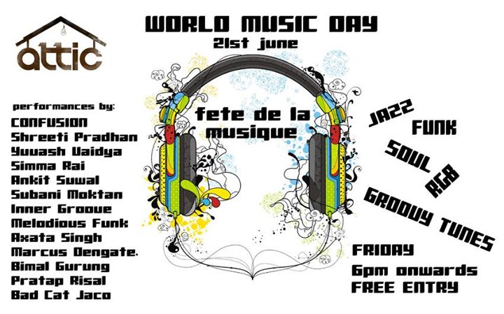 On the occasion of Fête de la Musique', also known as World Music Day, we present to you 4 hours of live music under one roof! These musicians are uniting on a day in which the world celebrates the magical gift of music. Presenting different styles of music not limiting to Contemporary Jazz, Indie, Hindi-English-Nepali covers, Original Pop, Instrumental Jazz, Soul R&B. Be prepared to groove with the most contemporary names in current live music in the city!!!