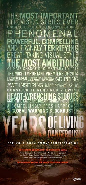 On 28 August 2014, we will screen the first part of 'Years of Living Dangerously', a 9-part Showtime documentary television series focusing on climate change that premiered on April 13, 2014.