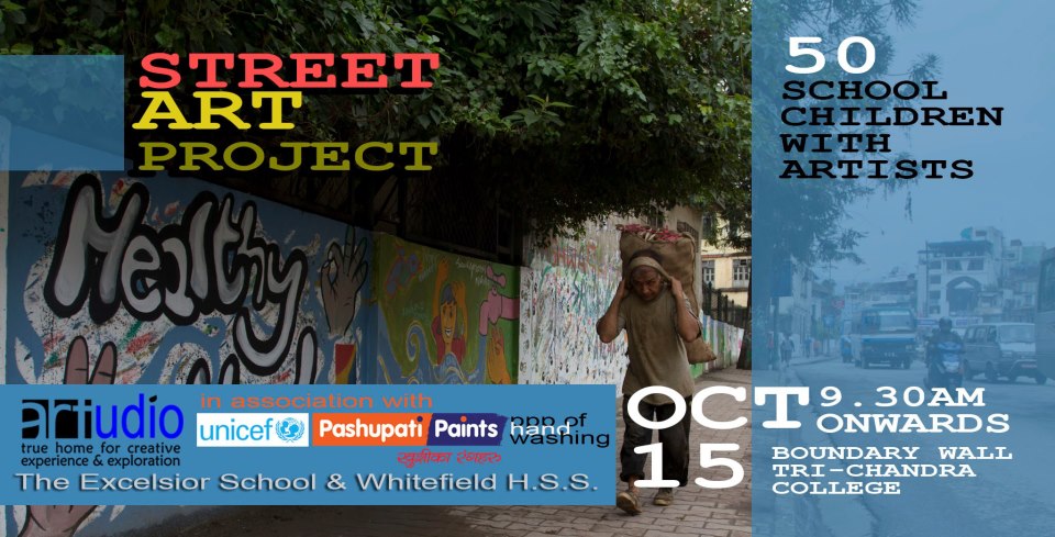 Artudio feels pleasure to announce yet another Street Art Project that is to be held on15 October, 2012 on the premises of Tri-Chandra College (Boundary Wall), Ghantaghar. Artudio, in association with UNICEF, Pashupati Paints, PPP of Hand Washing, The Excelsior School and Whitefield Higher Secondary School invites you to spread the knowledge on effectiveness of hand washing through the wide expression of colors.