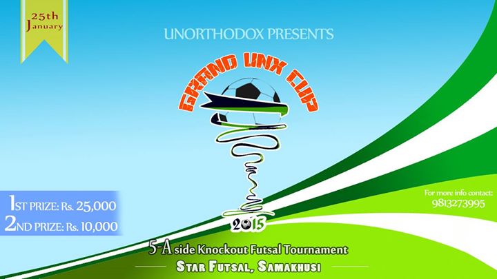 Unorthodox Private Limited & Just Partyin’ Time Entertainment presents, “Grand UNX Cup”, an open one-day 5-A side Knock Out Futsal tournament to encourage every person in football and sports with our motto of “Healthy People ~ Healthy Society”. The chief cause behind organizing this tournament is to unite all the futsal players and teams to participate and compete in a same tournament on a same pitch in a friendly manner. Since, the trend of playing futsal with respect to football has been rapidly increasing over some years in Nepal; the tournament is basically organized to encourage more and more people in this worldly loved sport as Football (Soccer).
