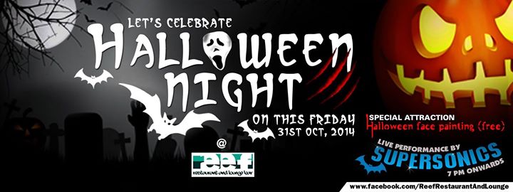 Let's celebrate this Halloween Night @ reef on 31st Oct, Friday. You can have your face painted (Halloween special) for free (6-8pm) Live Performance by SUPERSONICS starting from 7pm Please call us at 4411523 to book your seats in advance by Thursday night. Welcome Everyone!!..