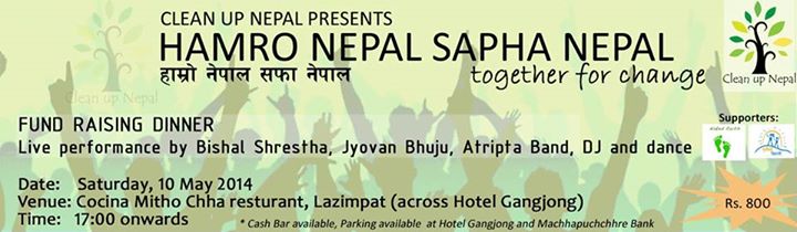 Join us for Clean up Nepal's FIRST fundraising event in Kathmandu. A delicious dinner with live performances by Bishal Shrestha, Jyovan Bhuju, Atripta Band, DJ and dance!