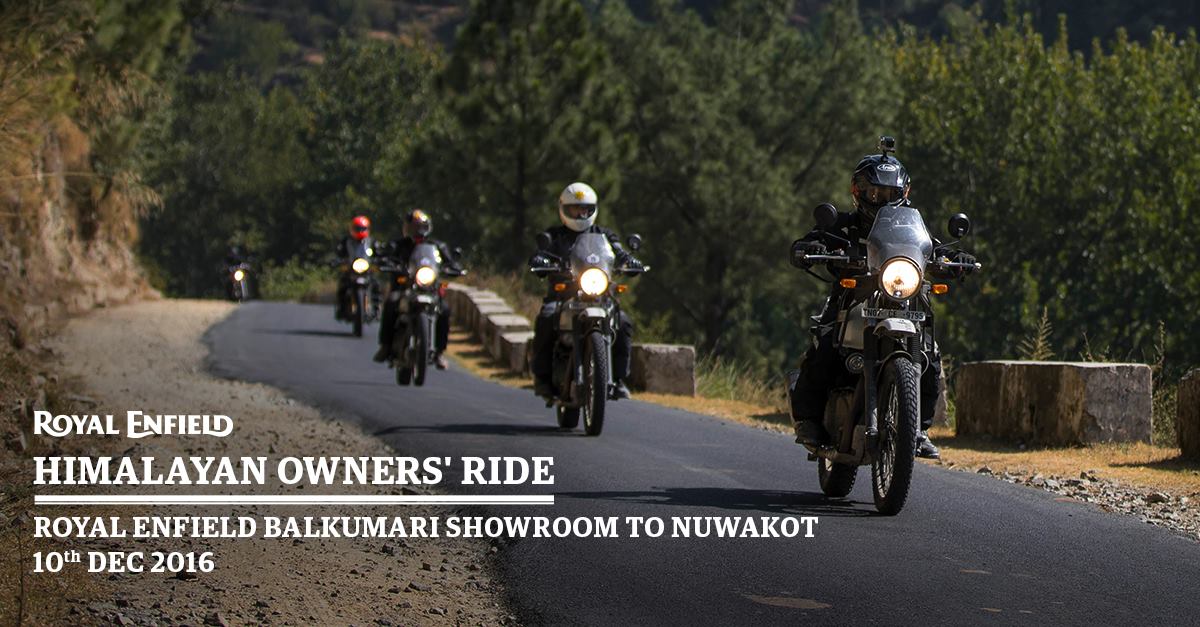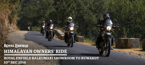 All the Royal Enfield Himalayan Owners are requested to join Himalayan Owners’ Ride on 10th December 2016. So all the interested Himalayan riders are requested to register their names in the Royal Enfield showroom along with one PP size photograph till 6th December 2016.