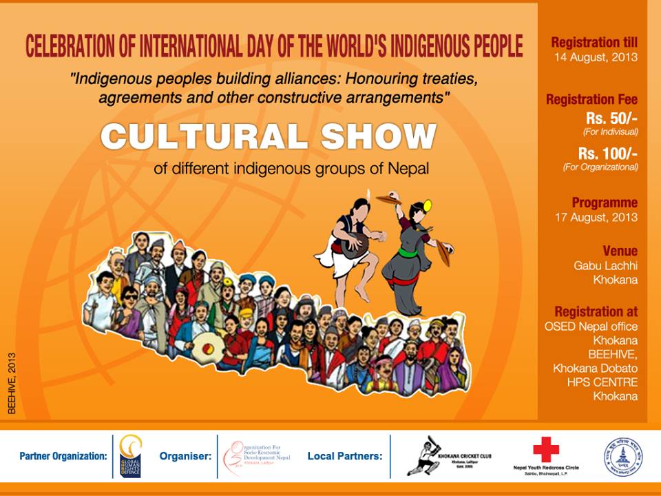 Celebration of World's Indigenous Day."Indigenous peoples building alliances: Honouring treaties,agreements and other constructive arrangements""Cultural Show" of different indigenous groups of Nepal on 17 August, 2013...