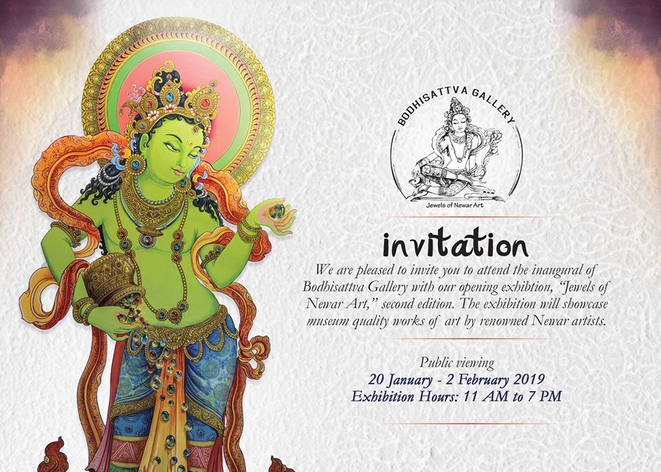 Bodhisattva Gallery’s first exhibition “Jewels of Newart Art” was held on 2011 at Siddhartha Art Gallery, Baber Mahal. A landmark exhibition and the first of its kind, from the collection of Anjana and Purna Man Shakya (owners of Bodhisattva Gallery) showcasing 25 years of their collection.