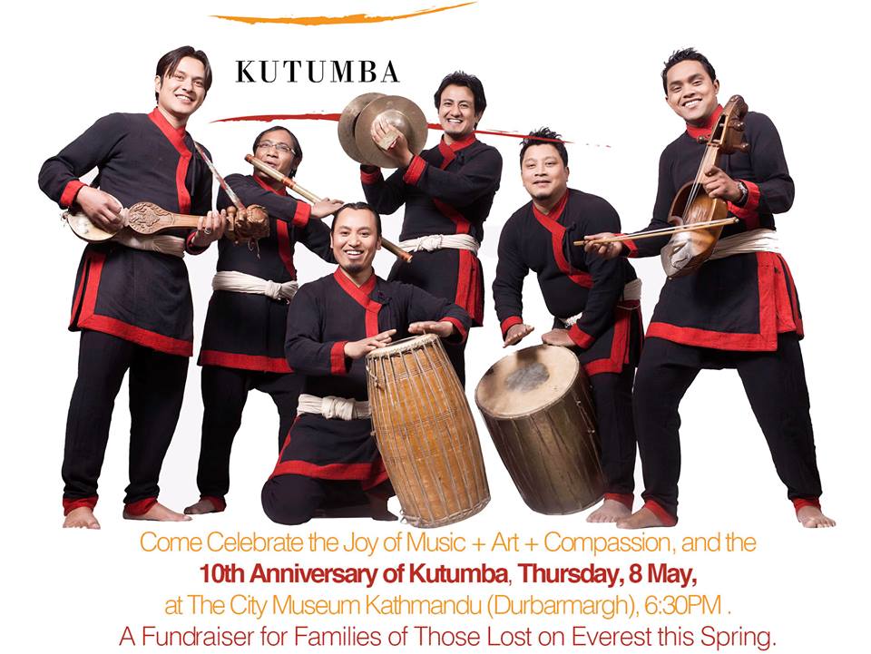 May 8, famed Nepali folk music ensemble KUTUMBA is celebrating their 10TH ANNIVERSARY with a CONCERT that lives up to their reputation of magnanimity and goodness. They are joining hands with other generous Nepali and International artists..