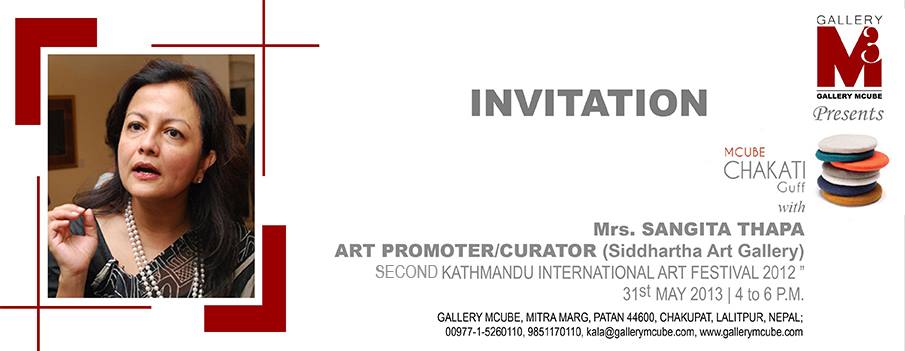INVITATION Gallery M-Cube cordially invites you to the Talk Series MCUBE CHAKATI-GUFF “SECOND KATHMANDU INTERNATIONAL ART FESTIVAL 2012†Talk and Presentation by ART CURATOR | PROMOTER | DIRECTOR (SIDDHARTHA ART GALLERY) M..