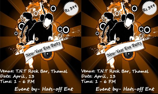 Hats off Entertainment Heartly welcomes you to New Year Eve Celebration Dance Party @Tongues & Tale(TNT) Rock bar on 13th April...Lets make it loud and wild.Friends don't forget to invite your friends Ticket price-399(Inclusive of a Tequila shot) Time:1 - 6 pm For more ..