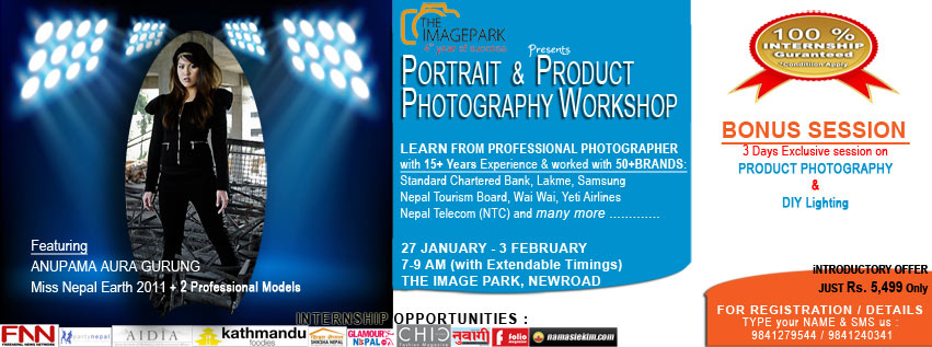 TheImagePark and Fashionholic introduces Special 8 days workshop which focuses on One-By-One and Step-By-Step guide for in-depth Portrait & Product Photography. This workshop would be mentored by Portrait n' Product photography specialist with 15+ years and worked with more than 50 brands like Standard Chartered Bank, Bank of Kathmandu, Wai Wai, Samsung, Lakme, Dabur Nepal, Asian Paints, Parachute Oil, LBEF, Apex College, Nepal Tourism Board, Hotel Everest, Yeti Airlines, Nepal Telecom (NTC) and many more.