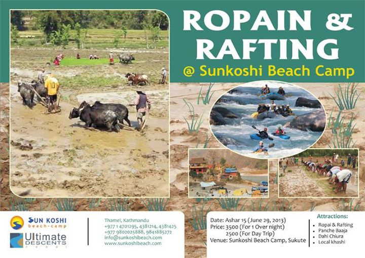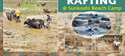 Celebration Ashare 15 at Sunkoshi Beach Camp, Sukute Attractions पन्चे बाजा सहित रोपाई हल गोरु दही चिउरा केरा Rafting Music Beach Volley Ball, fun games & much more... ----------------------------------..