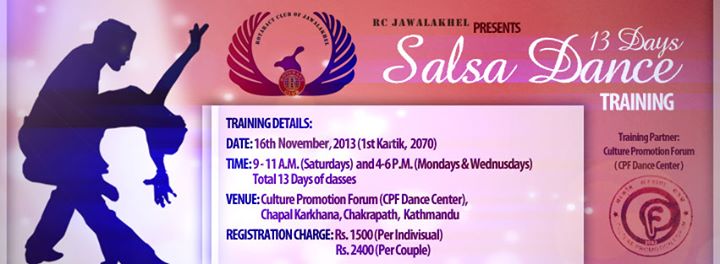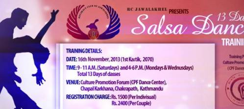 Rotaract Club of Jawalakhel is organizing a Salsa Training program starting from 16th of November, 2013 A.D. at Culture Promotion Forum Dance Center, Chapal Karkhana, Chakrapath.