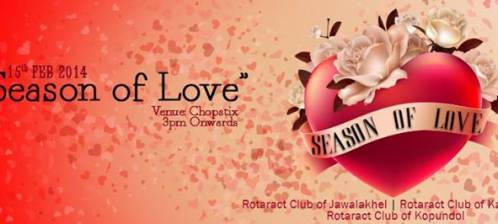 Rotaract Club of Kopundol along with Rotaract Club of Jawalakhel and Rotaract Club of Kathmandu are jointly organizing a musical event - “Season of Love 2013”, on 15th February at chopstix,Kumaripati.