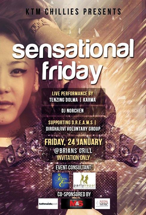 KTM CHILLY presents Sensational Friday 24th January (friday) Tenzing Dolma performing live afterparty DJ Norchen at Brian's Grill House..