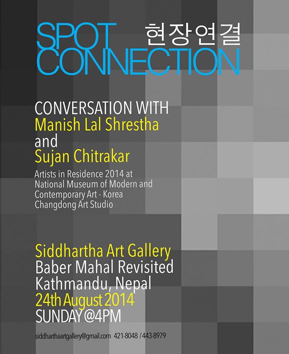 SPOT CONNECTION Conversation with Manish Lal Shrestha and Sujan Chitrakar Artists in Residence 2014 at National Museum of Modern and Contemporary Art- Korea Changdong Art Studio on Sunday 24th August 2014 at 4:00 pm at Siddh..
