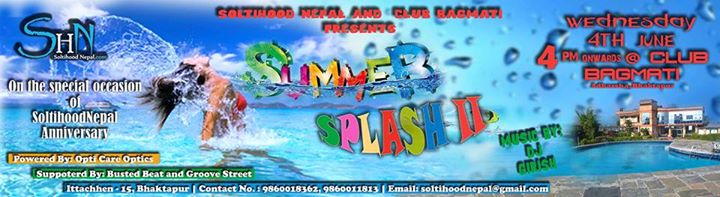 With the sucessfull SUMMER SPLASH Dance party last year...we are proud to organized SUMMER SPLASH II AT the most majestic venue in bhaktapur club bagmati. this time summer splash II is goanna be on dim light as it is our very first anniversary of soltihoodnepal .