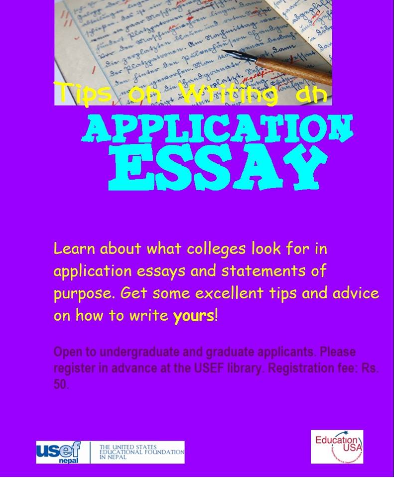 Learn about what colleges look for in application essays, and get some great tips and advice on writing yours. Open to undergraduate and graduate applicants. Advance registration at USEF is required. Registration fee is Rs. 50. Bring national ID for registratio..