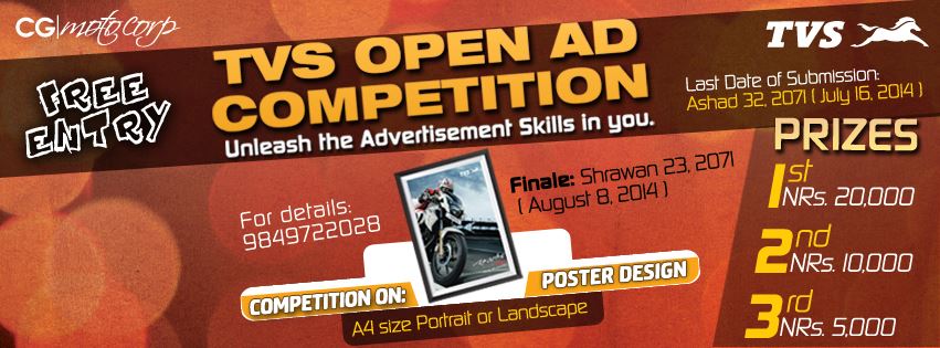 Want to revel your advertisement skills. Inbox us a Print Ad on any TVS Two Wheelers at https://www.facebook.com/cgmotocorptvs and let everyone know what you are capable of. TVS OPEN AD COMPETITION, Unleash the Creativity in You, Unleash the Advertisement Skills in You. FREE..