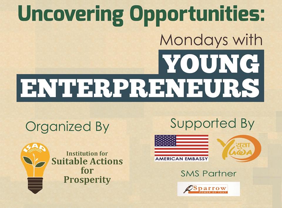 Screening of the entrepreneur's video will be followed by a Q&A session and a panel discussion. Our panelists include Hon. MP Gagan Thapa (Chairperson, Agriculture Resource Committee of the Constitutional Assembly), Ujwal Thapa, co-founder of Entrepreneurs for Nepal, and representatives from CEAPRED, an NGO that works for Agriculture Development, and US Embassy.