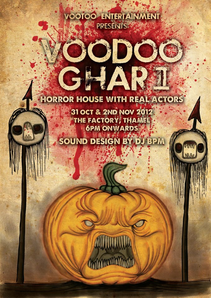 Vootoo Entertainment brings you Voodoo Ghar 2 this Halloween after a successful Bhoot Ghar at Tantra last season. Real Horror House with Real Live Actors. Step inside the Voodoo ''Bhoot'' Ghar if u dare...... Sound Design Dj BPM Venue: Factory Date: 31 Oct 2012 and 2nd Nov 2012 Time: 6:00 onw..