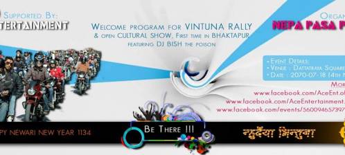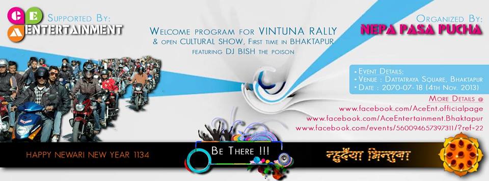 Welcome program for VINTUNA RALLY & open cultural show, first time in Bhaktapur featuring DJ BISH the poison by NEPA PASA PUCHA, managed by ACE Entertainment..
