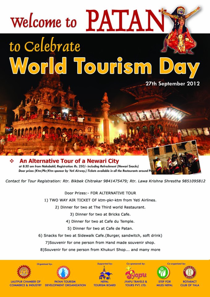 Rotaract Club of Yala along with Step for Miles Nepal are co-organizing the World Tourism Day Celebration Program to be organized by Patan Tourism Development Organization and Lalitpur Chamber of Commerce and Industry. Join us to enjoy a whole package of exciting events for coming Thursday.