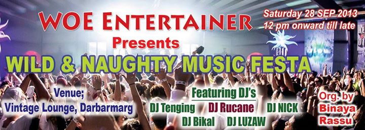 We are Very Lucky to say that our Wild & Naughty Music Festa supported by All siniour Event.All Party People Our Venue location is at {VINTAGE LOUNGE} (Top Floor at HOTEL WOODLAND) Darbarmarg,KTM................................................