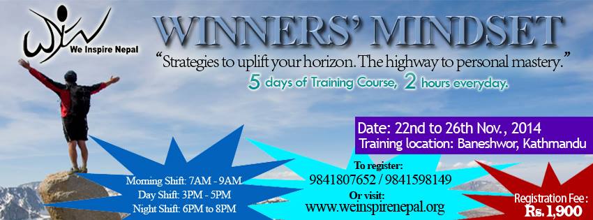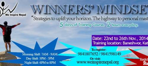 5 days of powerful training program, 2 hours everyday, for the first time in Nepal to create a Winning Mindset and bring a life changing experience in you.